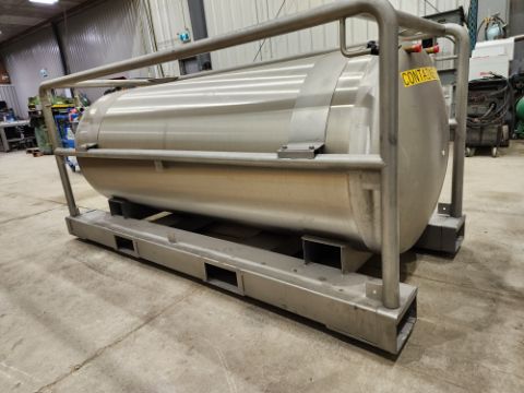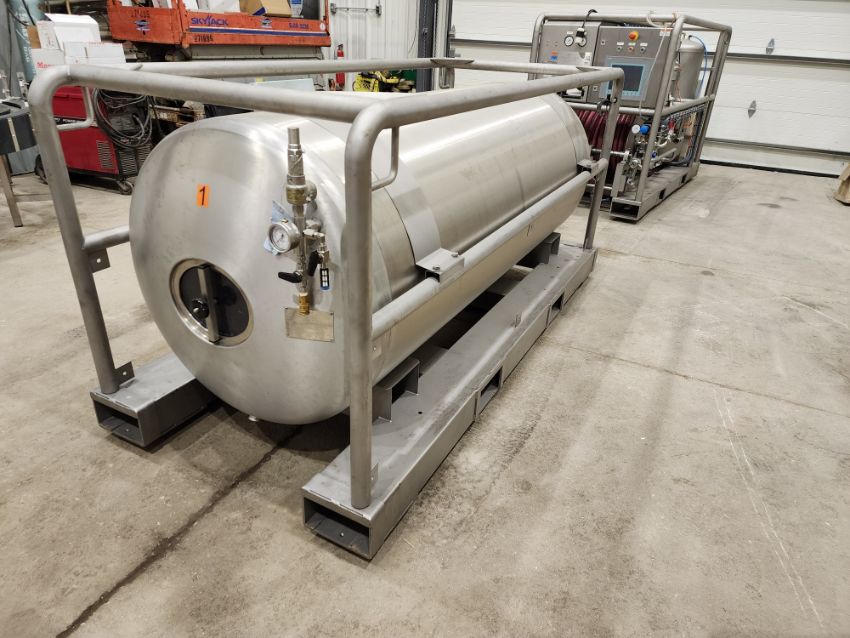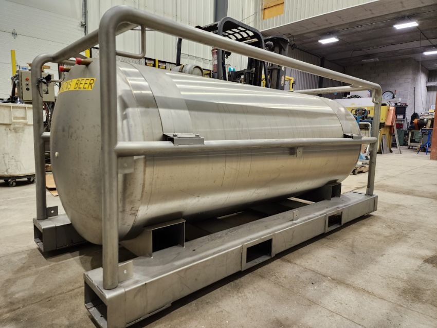 2017 Duotank Portable Beer Transport System Fully Integrated Loading Transporting Stabilizing Unloading System Complete with Liquid Handling Skid and 4 x 10.6HL Horizontal Pressurized, Jacketed, Brite Beer Transport Tanks. ASME rated and certified, Some tanks never used - Rigging Fee: $1,500