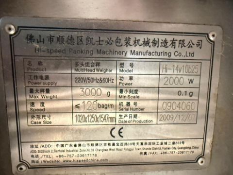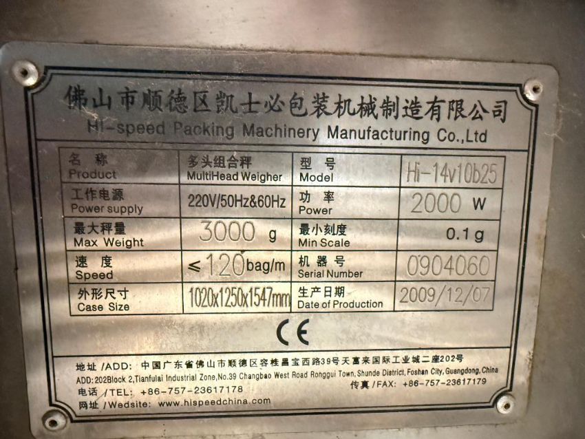 Hi-Speed Packing Machinery Manufacturing 14-Head Bucket Scale, Model: Hi-14V10B25, S/N: 0904060 (Location: Clara City, MN) - Rigging Fee: $500