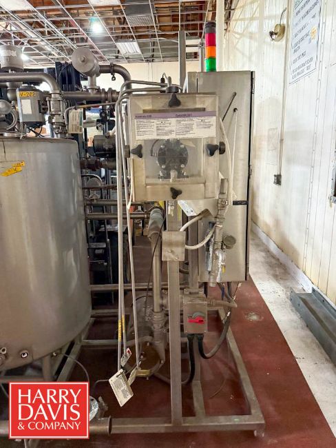 175 Gallon x (2) S/S Skid Mounted CIP System with Assorted Valves, Pneumatic Valves, Chemical Dosing Pump, Actuators, Piping and Controls with Allen-Bradley PanelView Plus 700 HMI, Allen-Bradley I/O’s, Contactors and Breakers (Location: Visalia, CA) - Rigging Fee: $3,000
