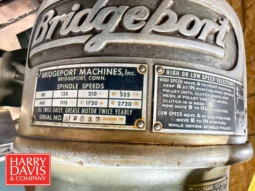 Bridgeport Vertical Milling Machine, Model: QZA, S/N: A114597 with 3 HP 1,745 RPM Motor (Location: Port Edwards, WI) - Rigging Fee: $500